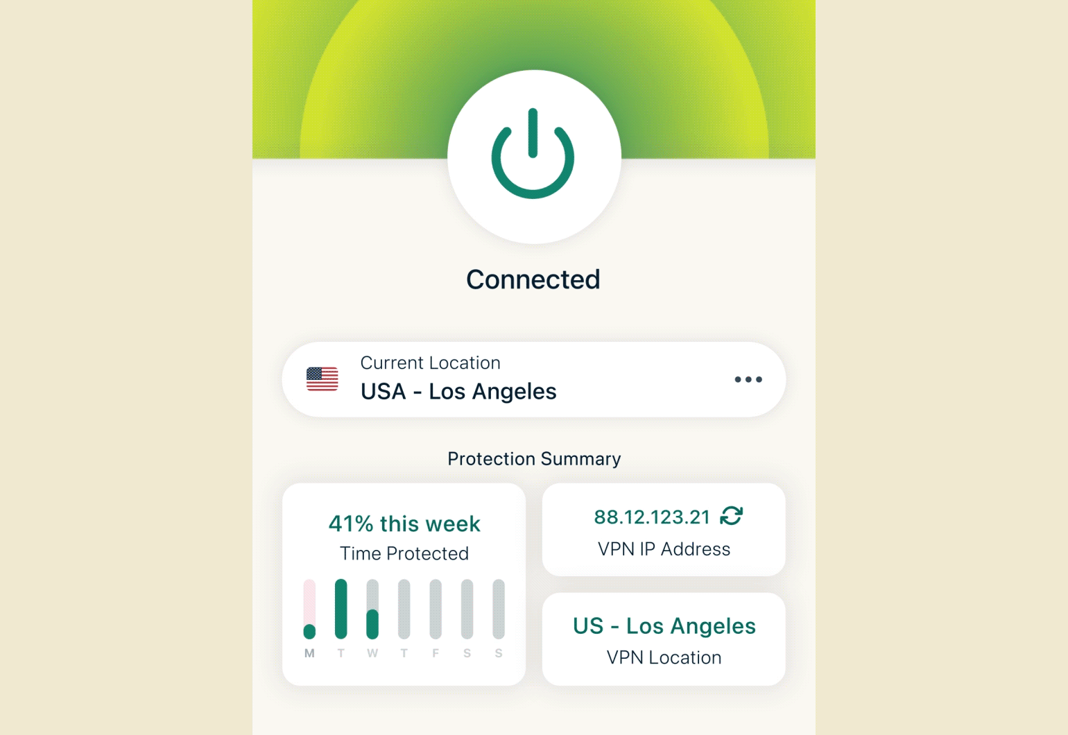 All ExpressVPN users enjoy the simplicity of pressing our app’s “on” button to instantly get a different IP address and secure their internet activity with best-in-class encryption.