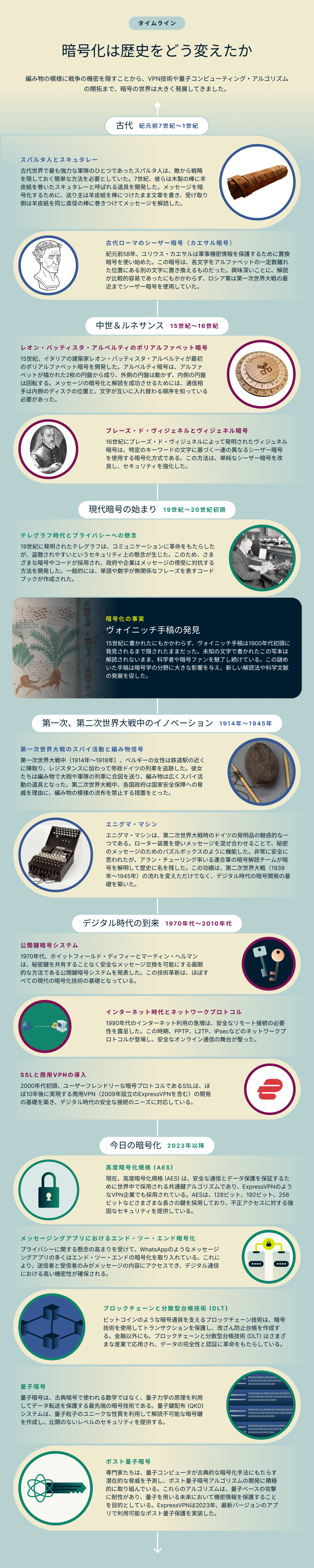 暗号化技術は歴史の中で複雑に絡み合い、古代スパルタから量子コンピューティングの時代まで、私たちの個人データや通信を保護する方法を形成してきました。