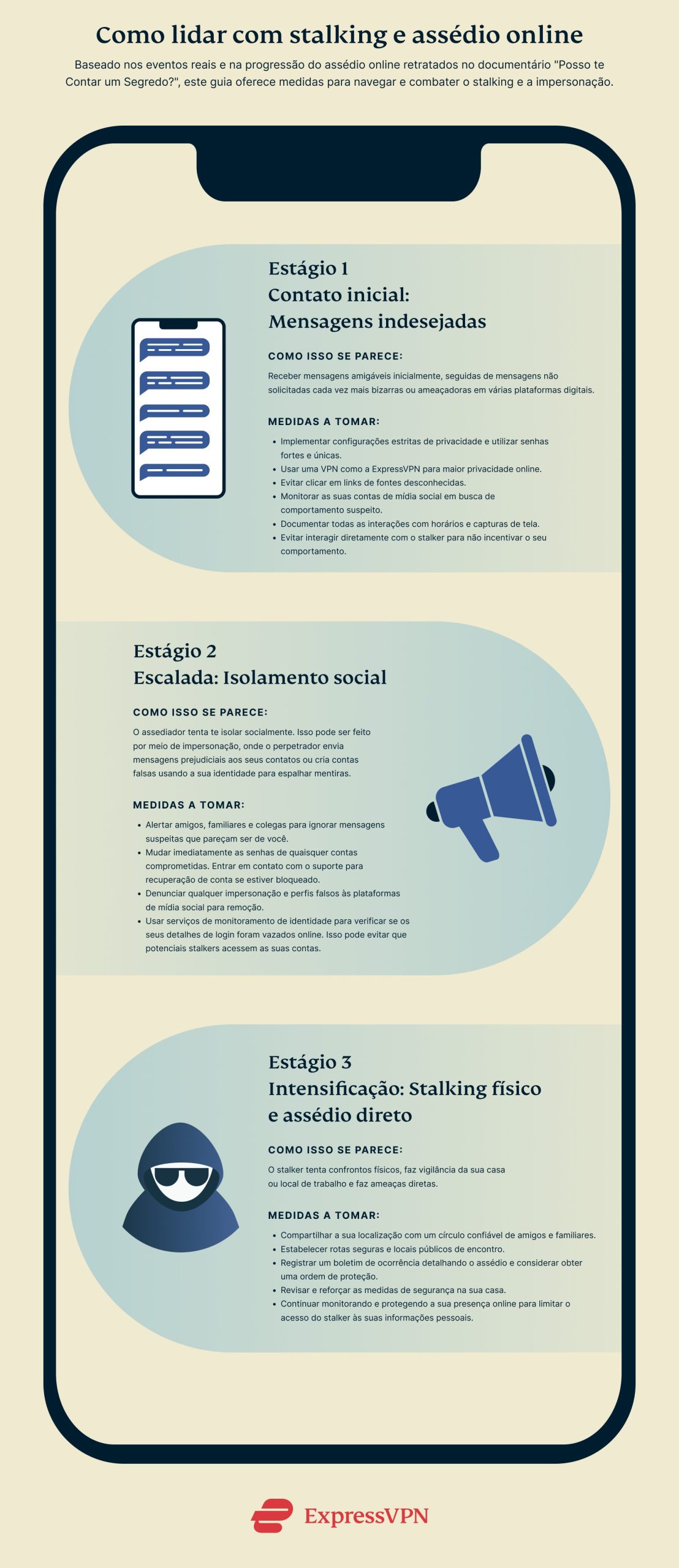 Inspirado na progressão inquietante observada em Posso te contar um segredo?, este guia investiga a natureza multifacetada do abuso digital, em que a perseguição e o assédio cibernéticos às vezes se transformam em ameaças à privacidade online, culminando, por fim, em perseguição física.