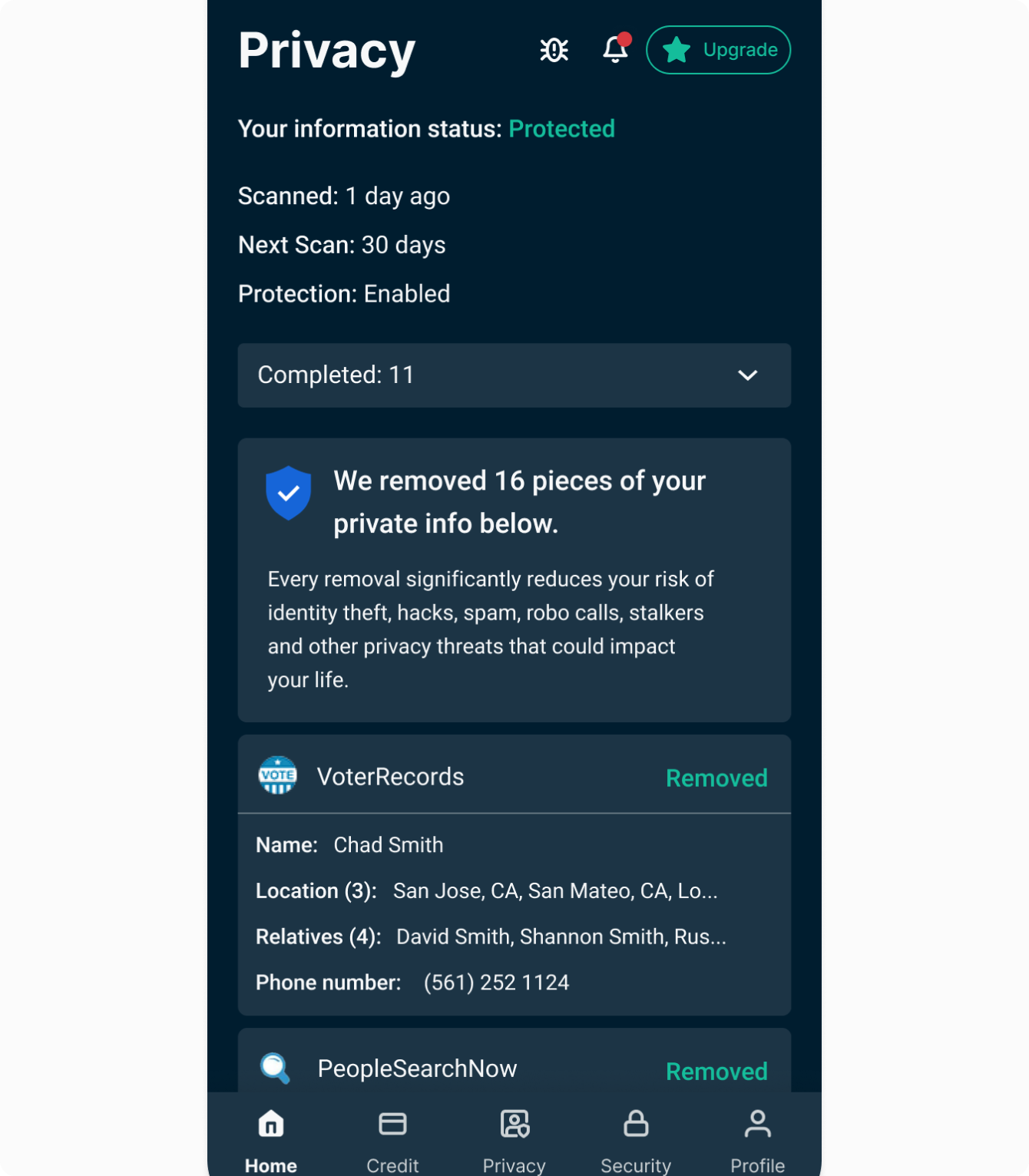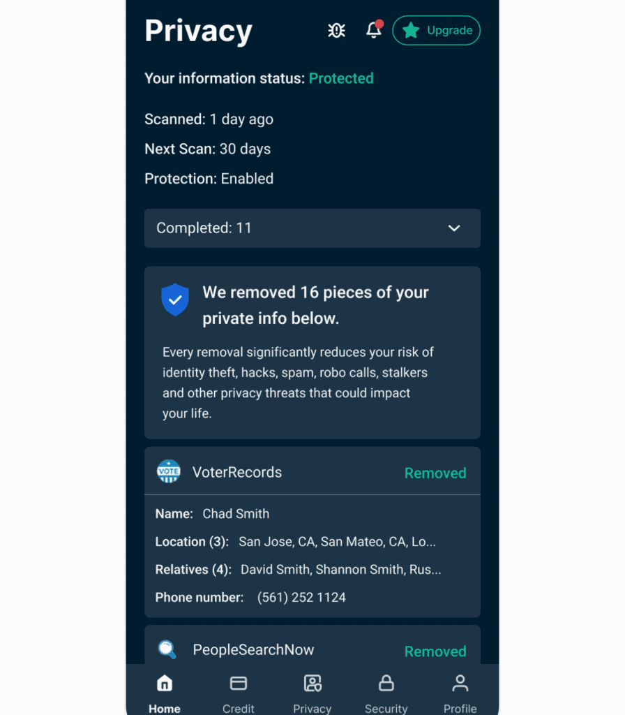After your data is removed, the service will scan the sites again to ensure your information doesn’t reappear on data brokers and people-search sites. This will be done on a regular basis automatically. You can check the progress of your removals and scans at any time within the Privacy tab.