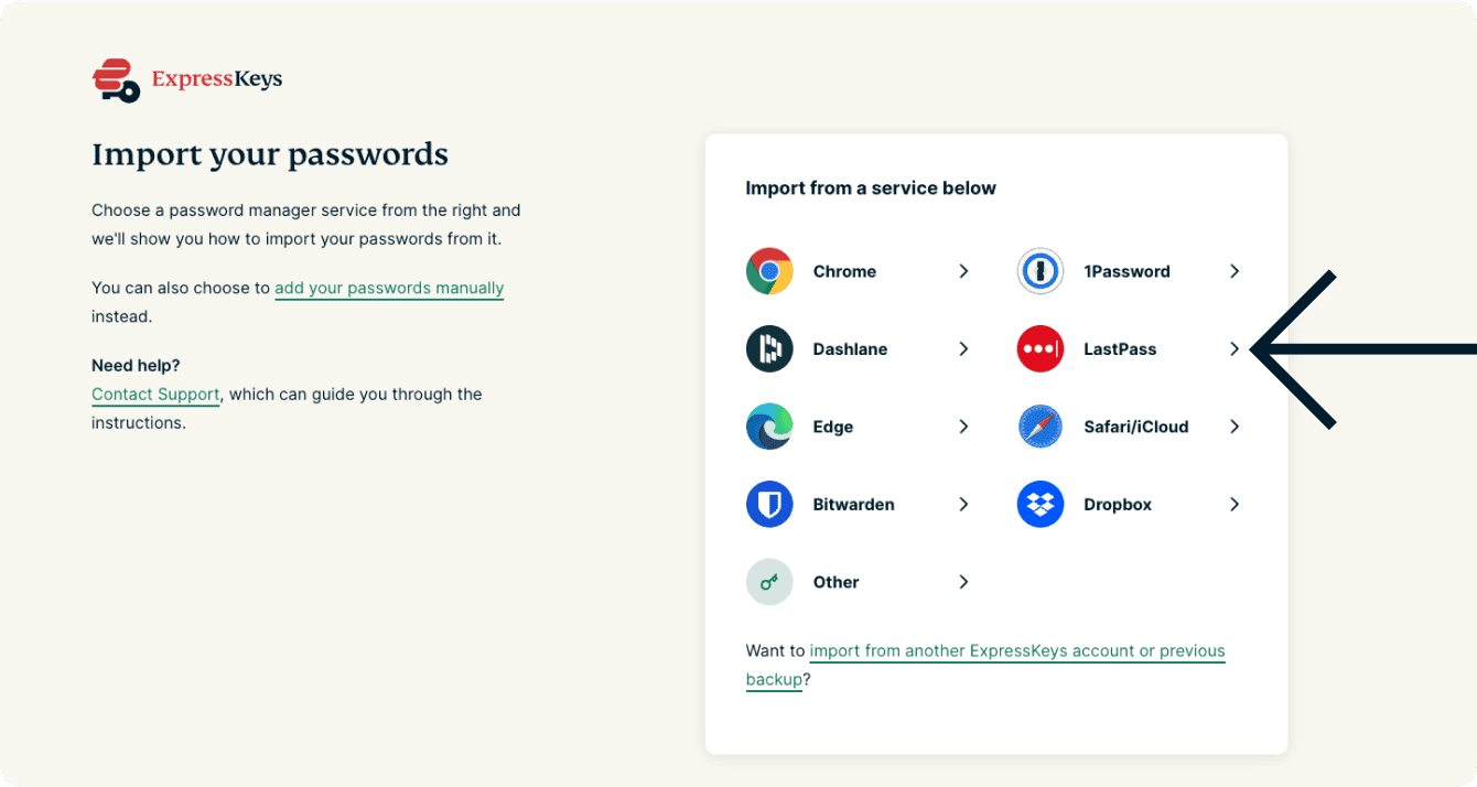 1. Import your LastPass data into ExpressKeys