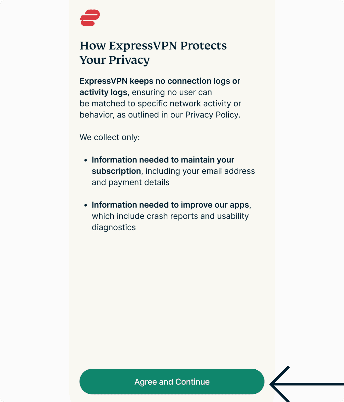 Note that you do not need to set up an email and password for your ExpressVPN account if you only intend to use ExpressKeys on the same mobile device you used to purchase your ExpressVPN subscription.