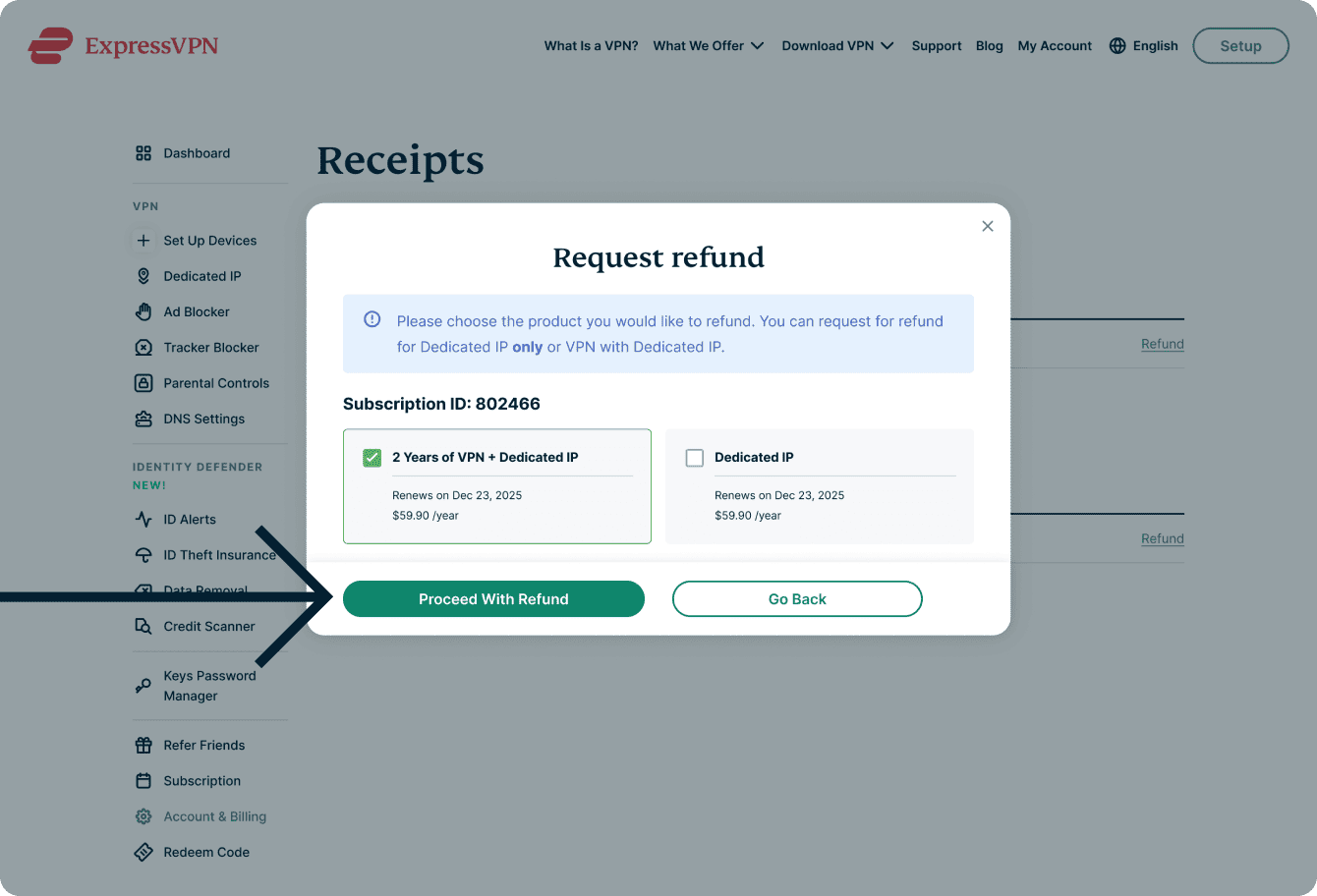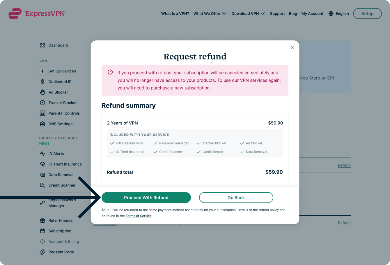 This guide details ExpressVPN’s refund policy and money-back guarantee, while also showing you how to get a refund.
