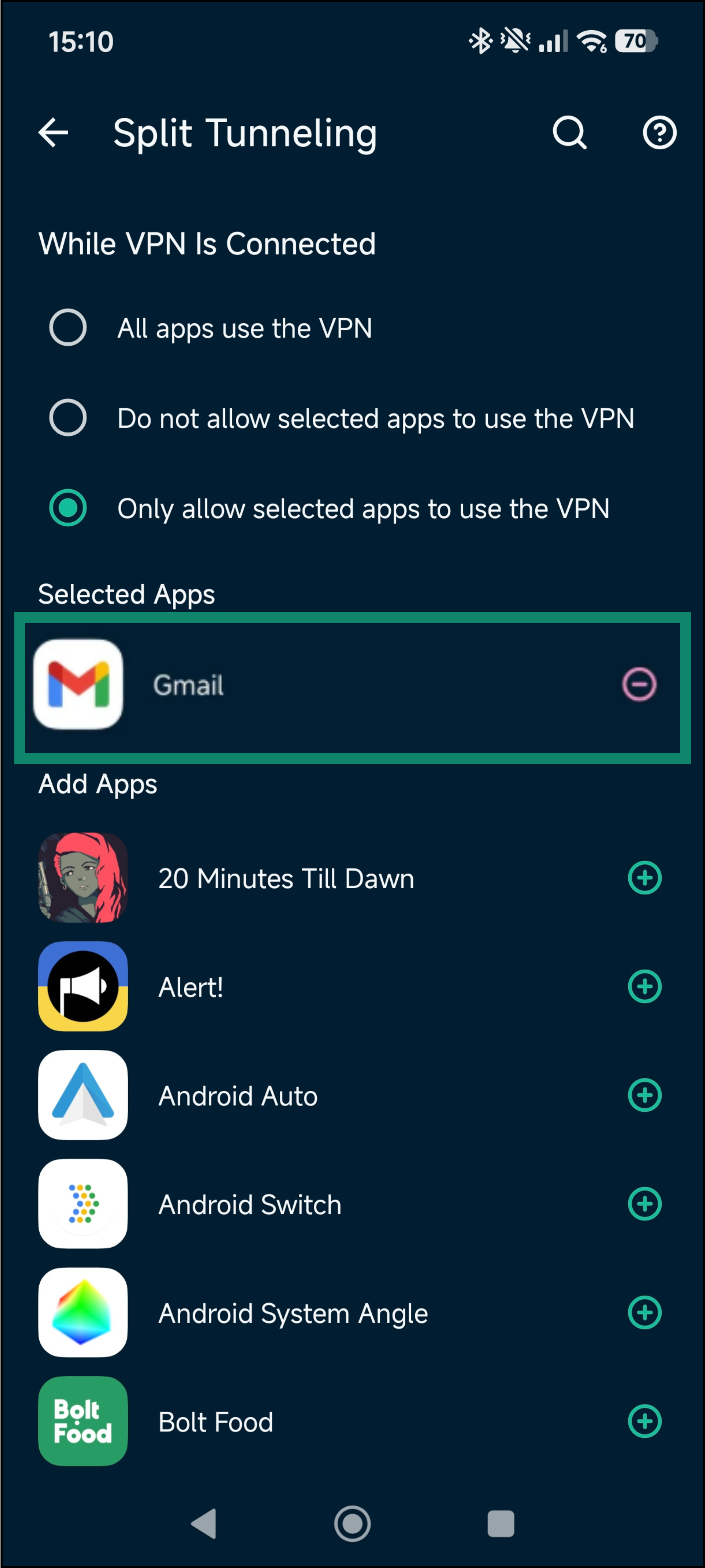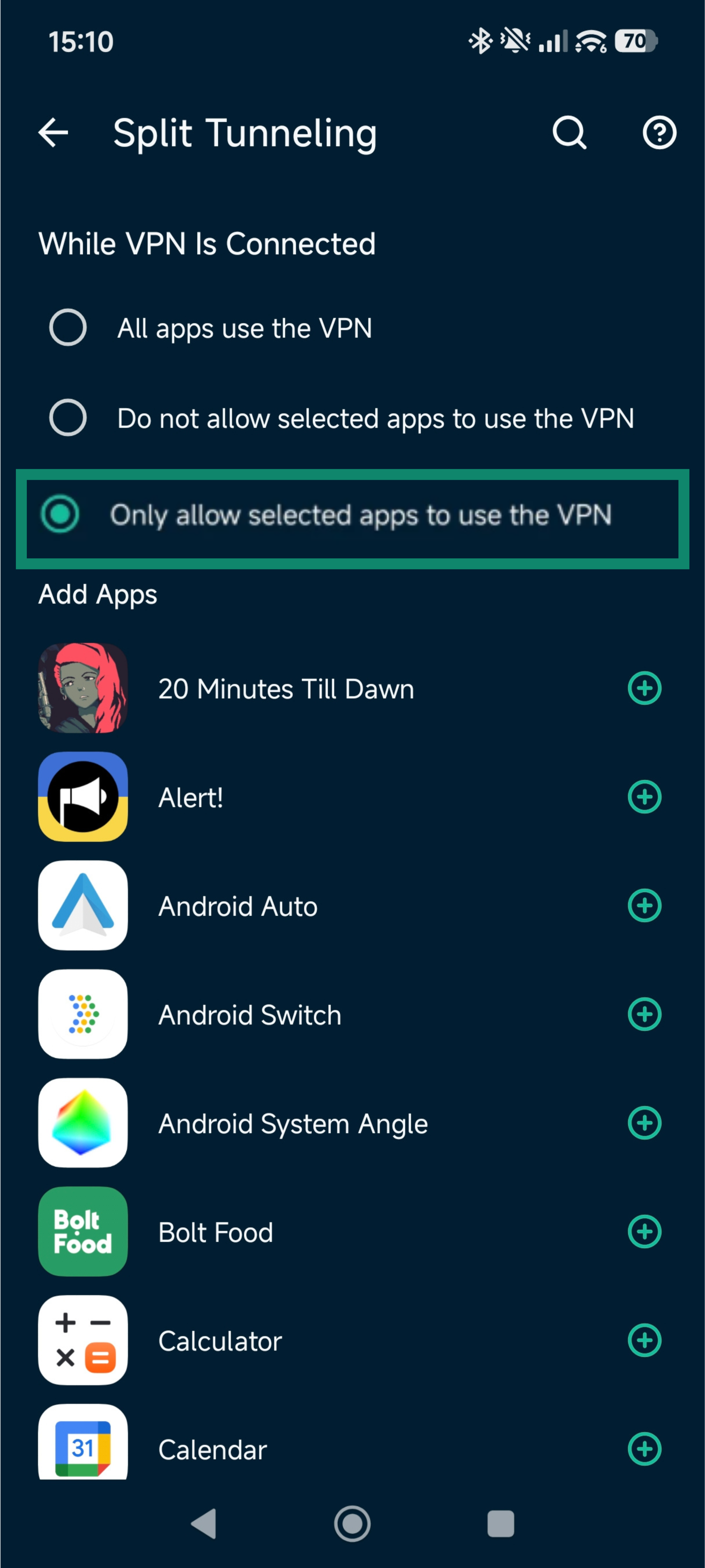 - Select Only allow selected apps to use the VPN.
