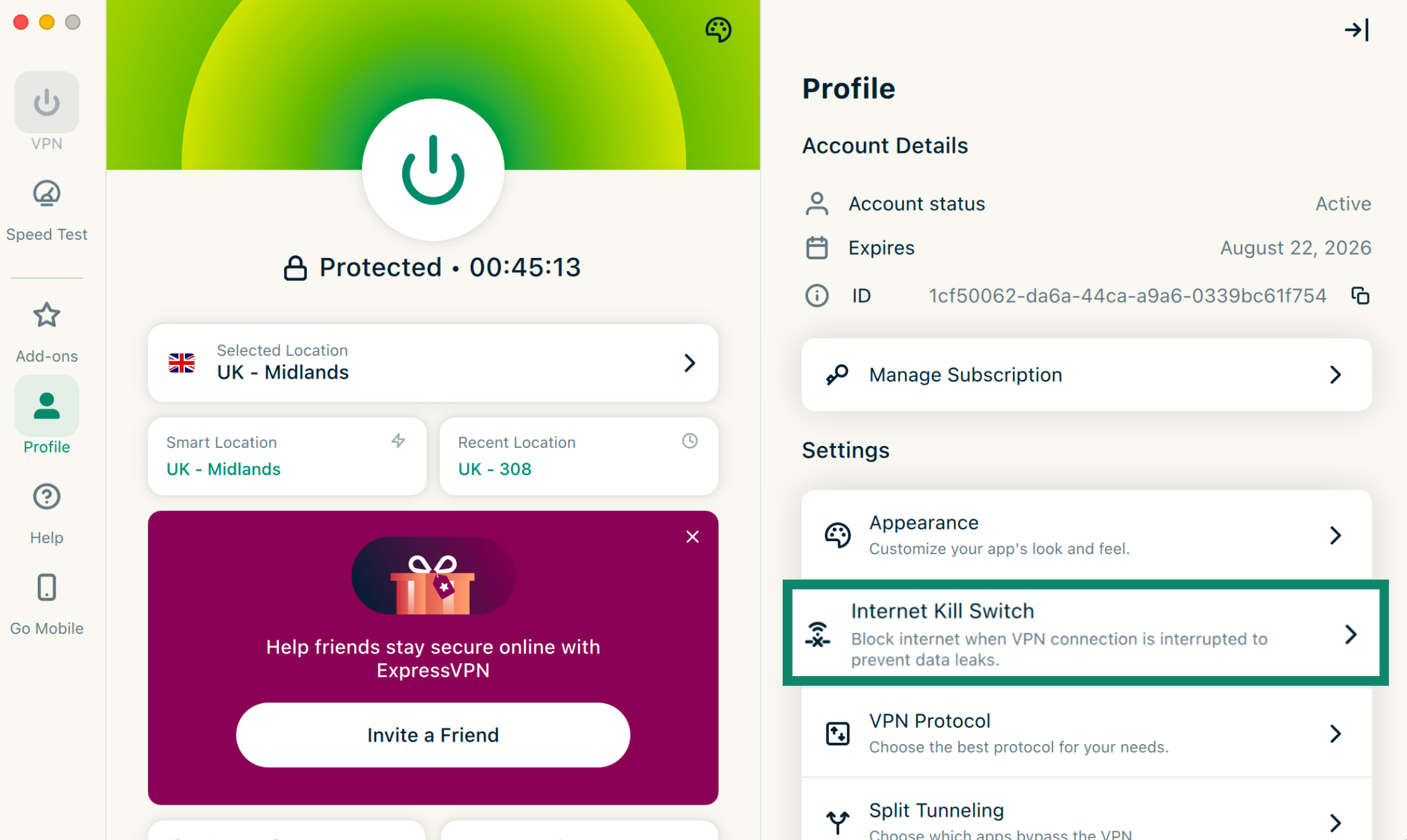 - Under Settings, click Internet Kill Switch.