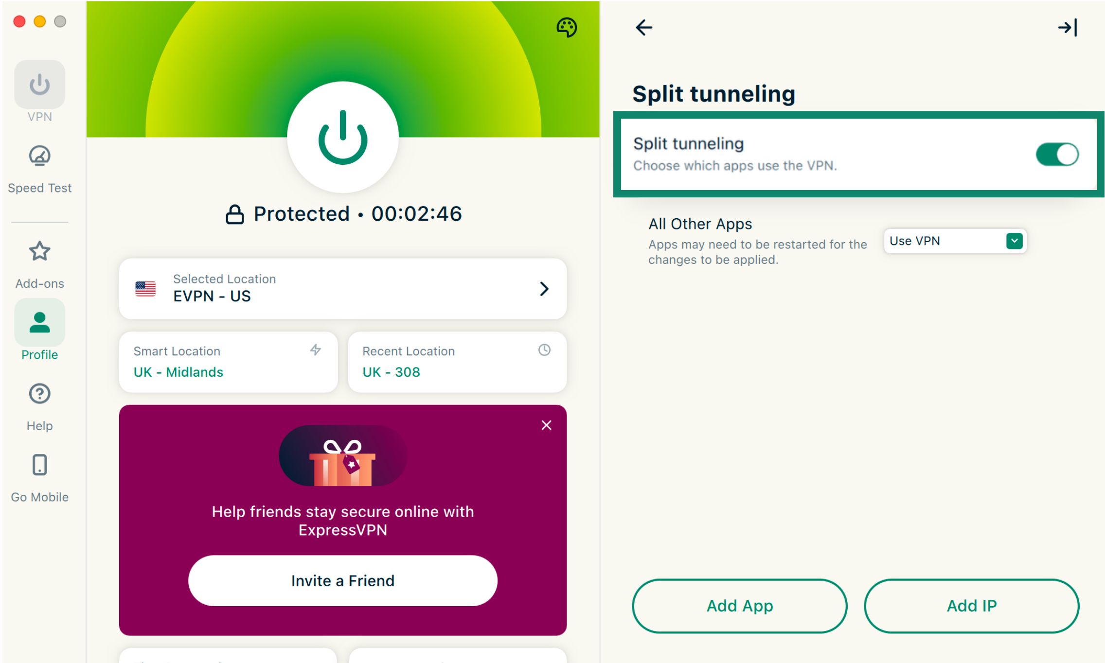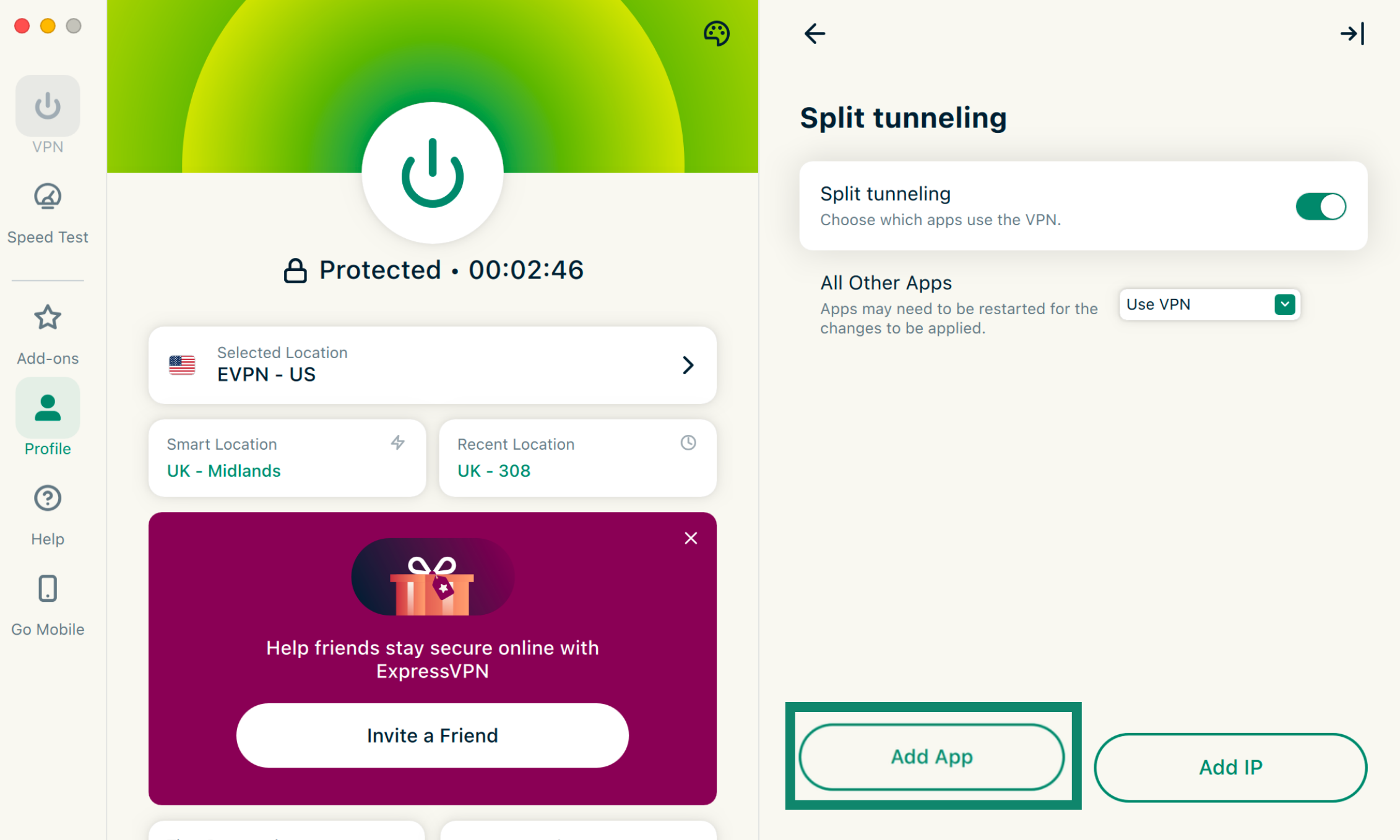 Once you’ve allowed local access, you can use ExpressVPN’s split-tunneling feature to exclude your email app from connecting to the VPN on desktop. To do so:
