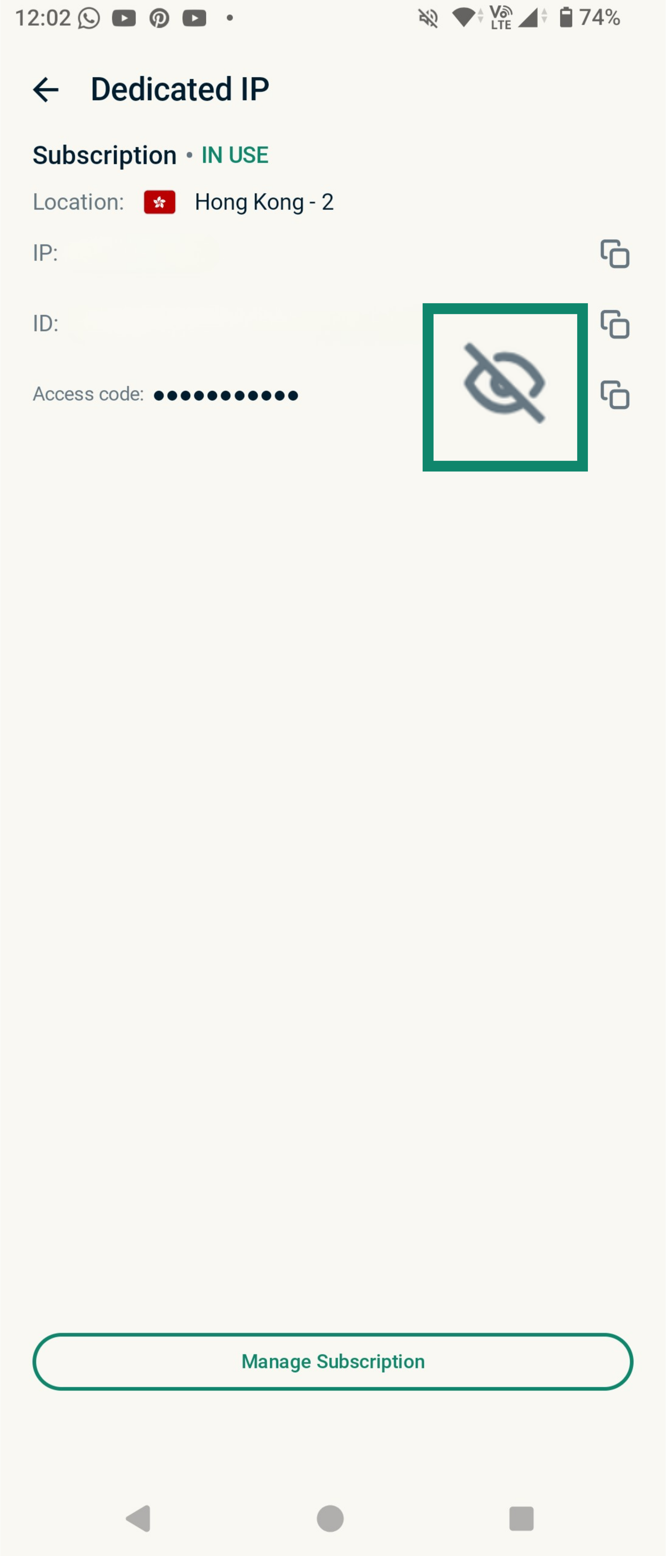 Retrieve your dedicated IP access code on mobile