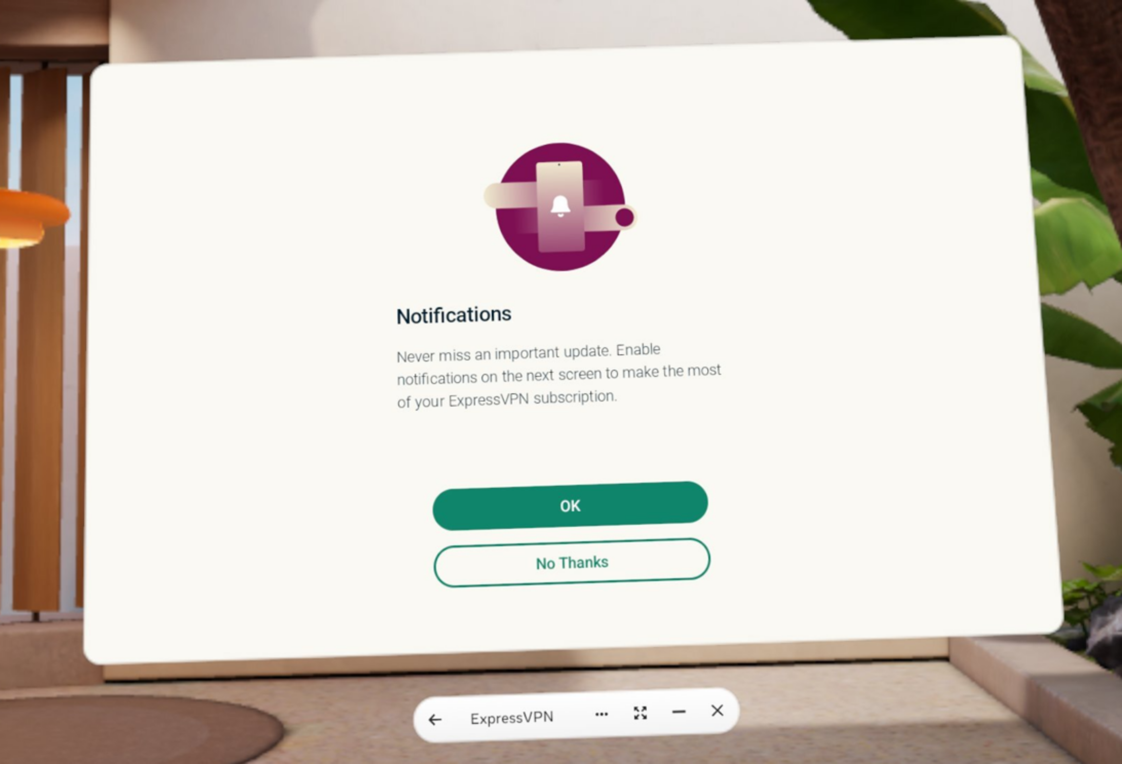 - You will be asked whether you want the ExpressVPN app to send you notifications. Select your preference to continue.