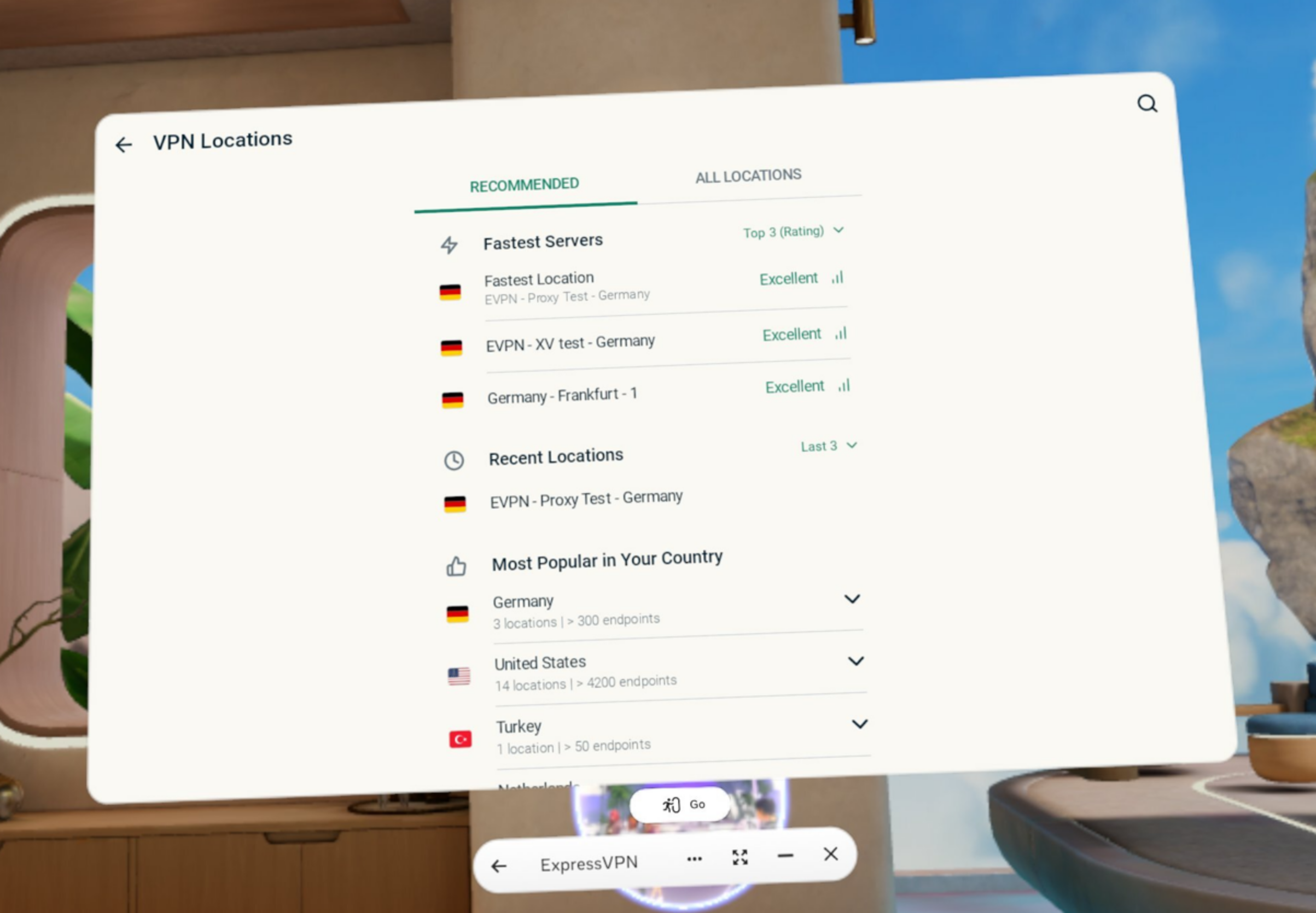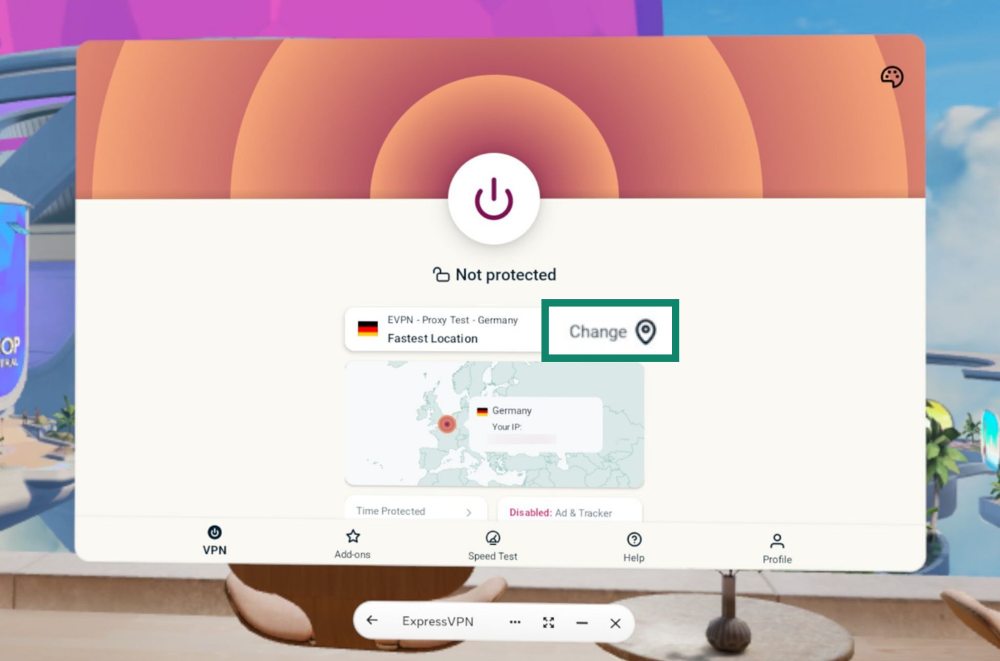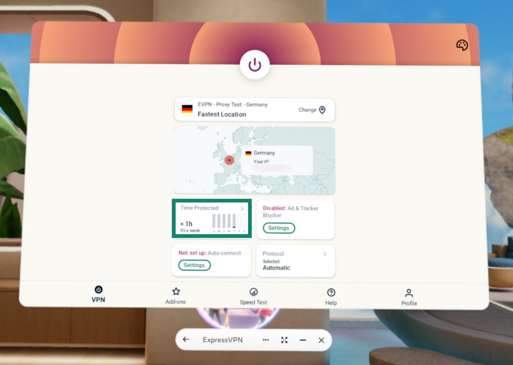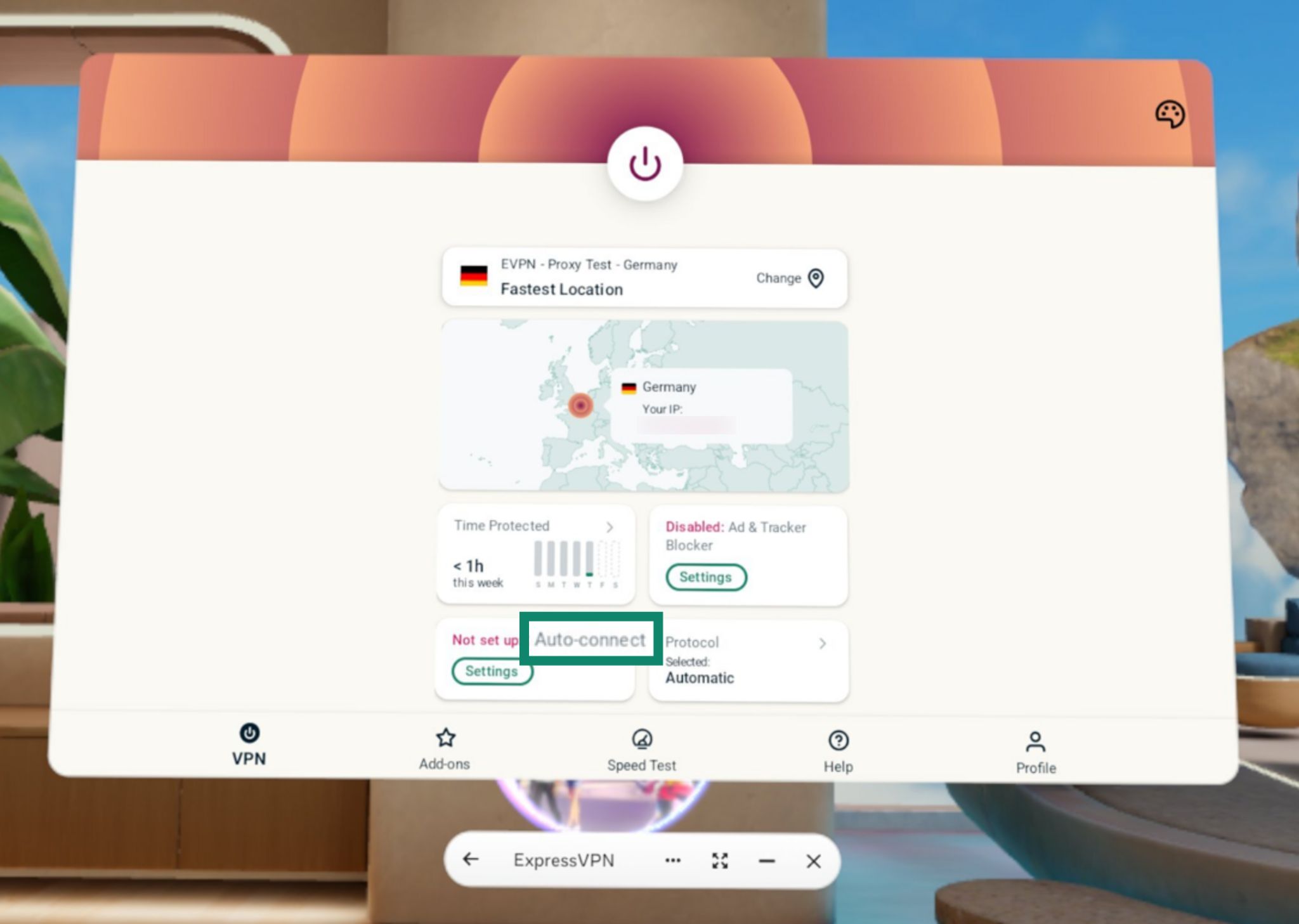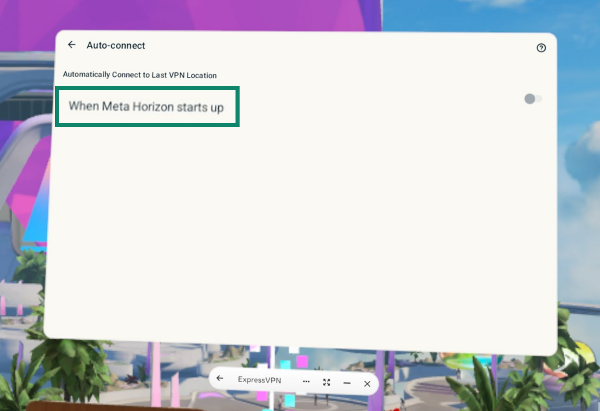 You can set up the ExpressVPN app for Meta Quest to automatically connect to the last VPN location you were using when you turn on your Meta Quest.