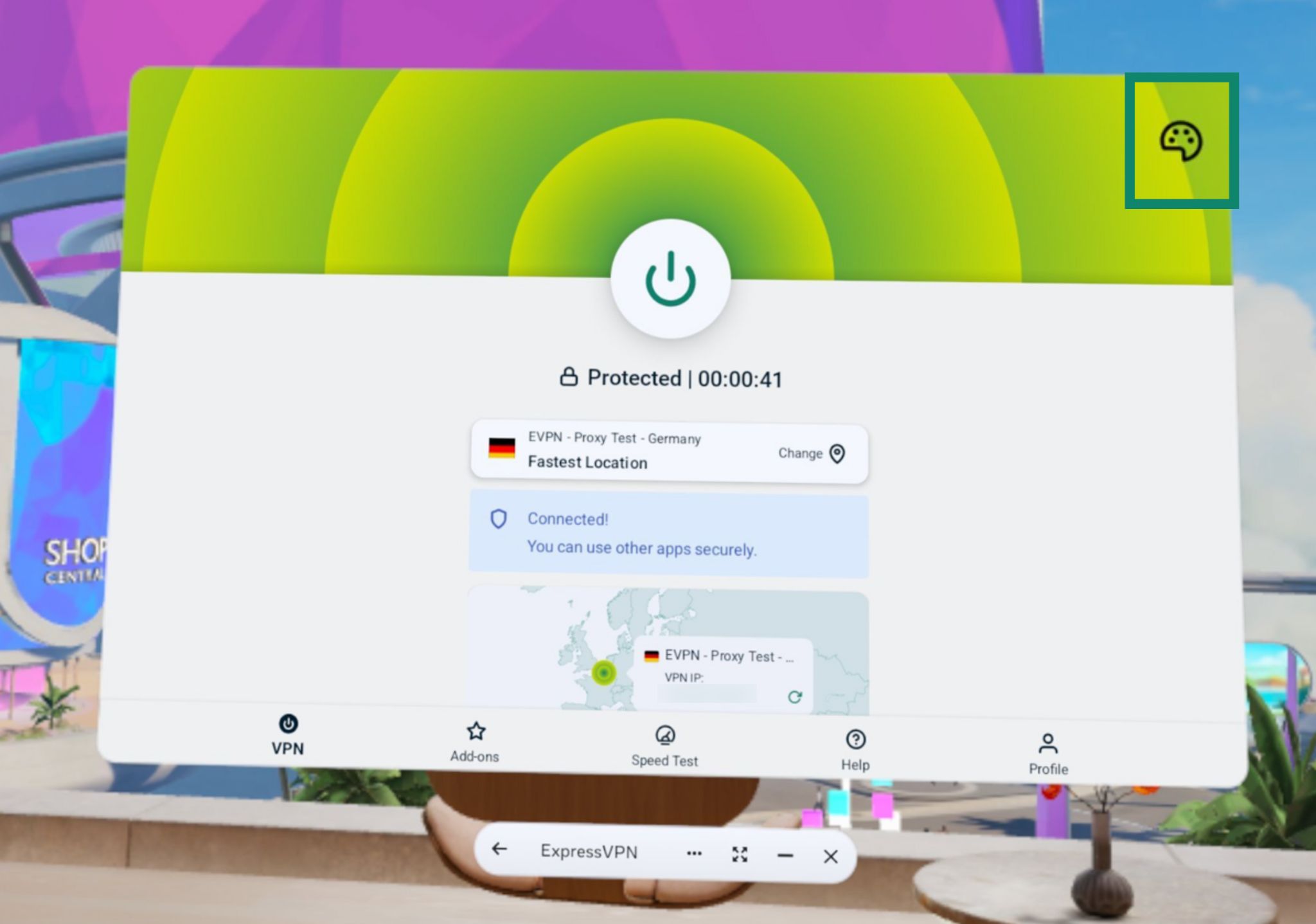 - On the VPN tab, select the color palette icon in the top-right corner of the app.