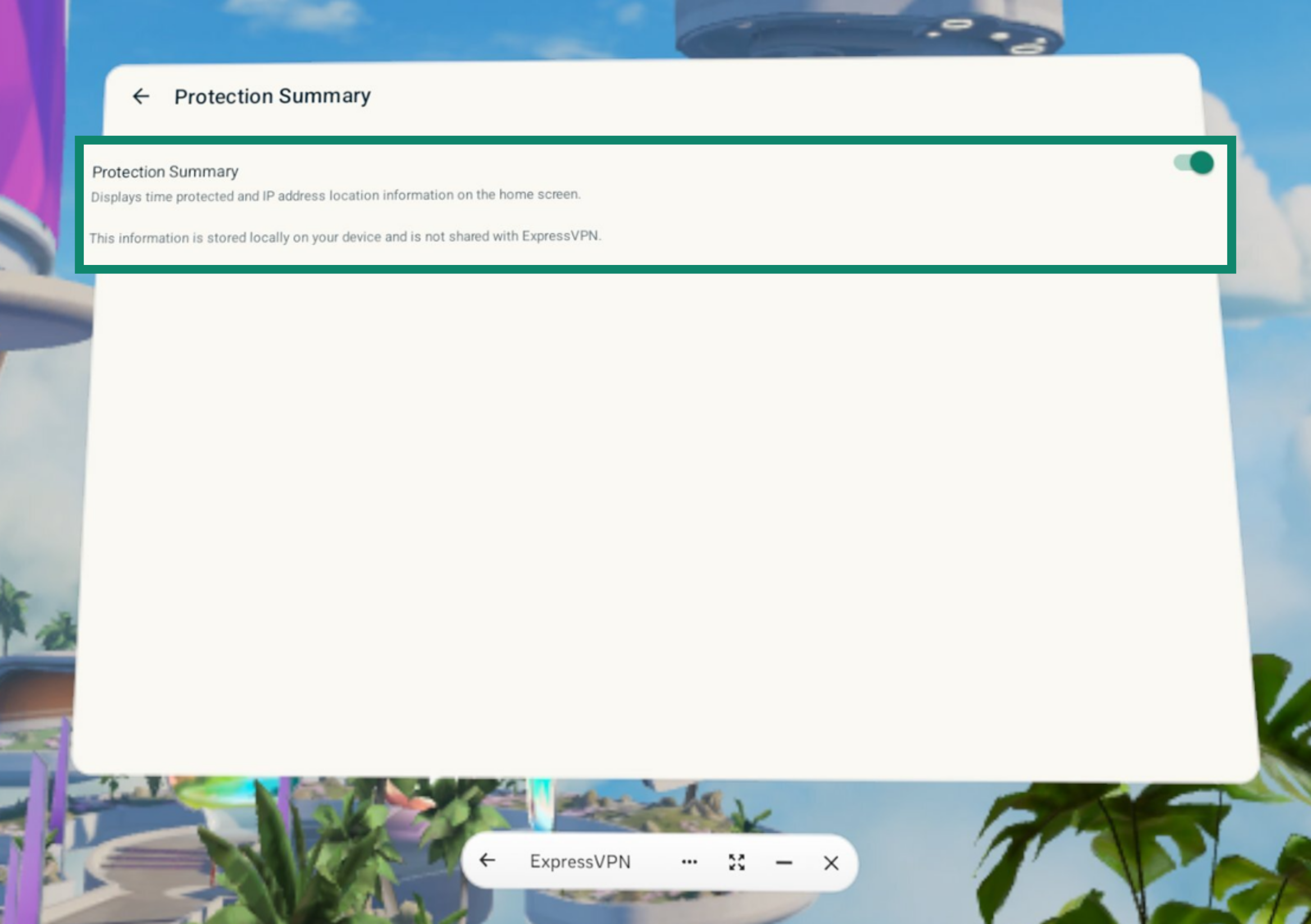 Important: Your connection information in Protection Summary is completely private. It is stored only on your device and never sent to ExpressVPN.