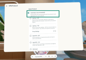 VPN protocols are how your Meta Quest connects to a VPN server. For the best experience, ExpressVPN recommends using the Automatic protocol option. This is selected by default and automatically picks the protocol most appropriate for your network.