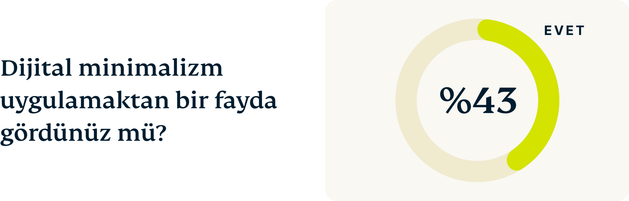 Aslına bakılırsa, katılımcıların %43’ü dijital minimalizmden dikkate değer faydalar gördüklerini belirtti. Bu gereksiz dikkat dağınıklığını belirleyen ve ortadan kaldıran birçok kişi, hayatlarının daha tatmin edici ve çok daha az telaşlı olduğunu belirtiyor.